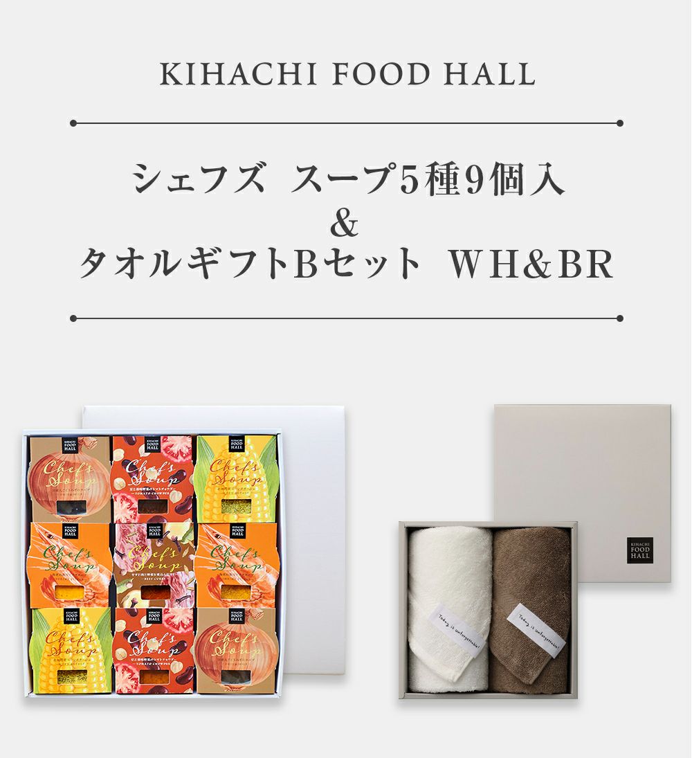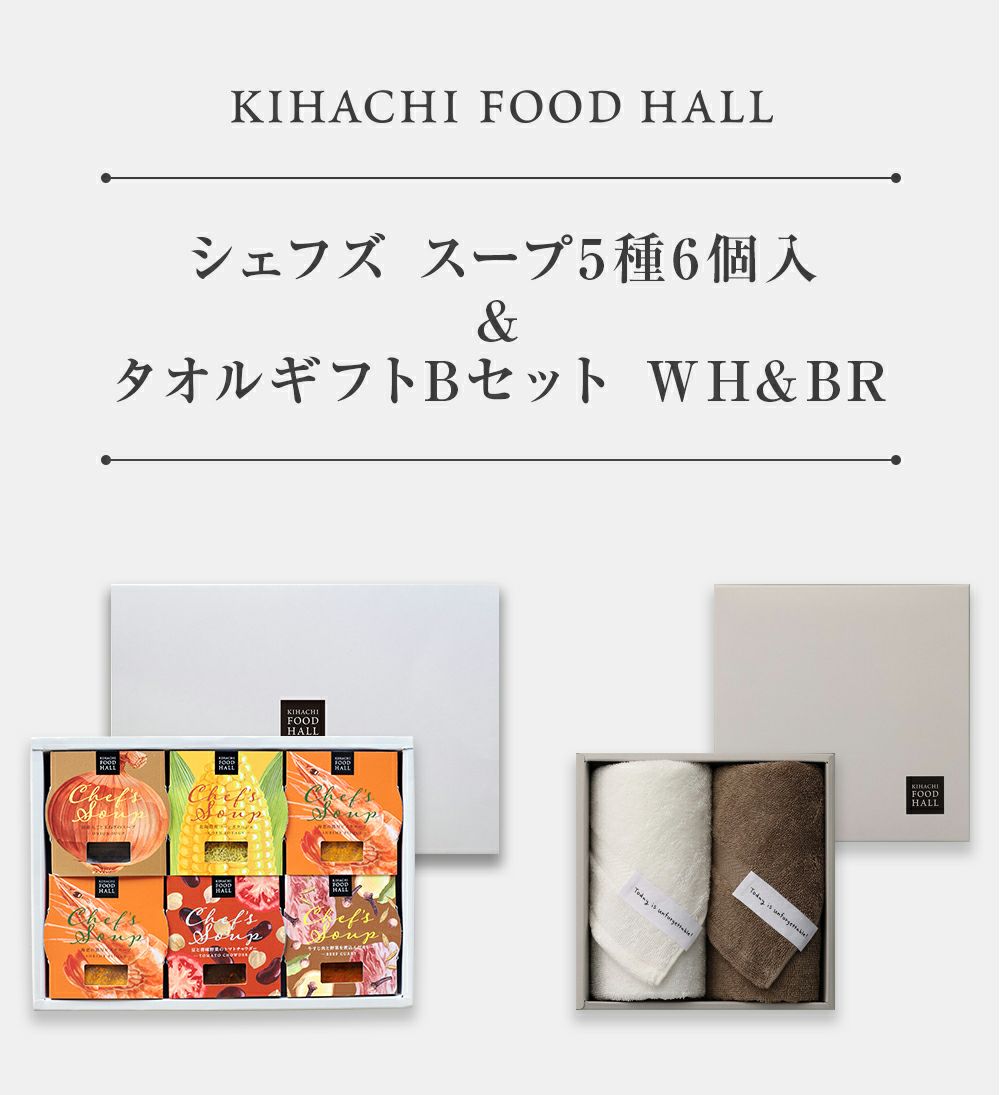 他の画像を見る 日本国内・泉州で生産されたこだわりのタオル シェフズ スープ5種6個入&タオルギフトBセット WH&BR 送料無料 価格 ¥ 6,804 税込 販売期間 2024/08/01 10:00 〜 詳細を見る お気に入りに登録する