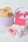 バームクーヘン プレーン ×1 ケークアングレ ×1 黒胡麻と黒糖クッキー ×3 バニラクッキー ×3 合計4種8個入 プリザーブドフラワーリース ×1