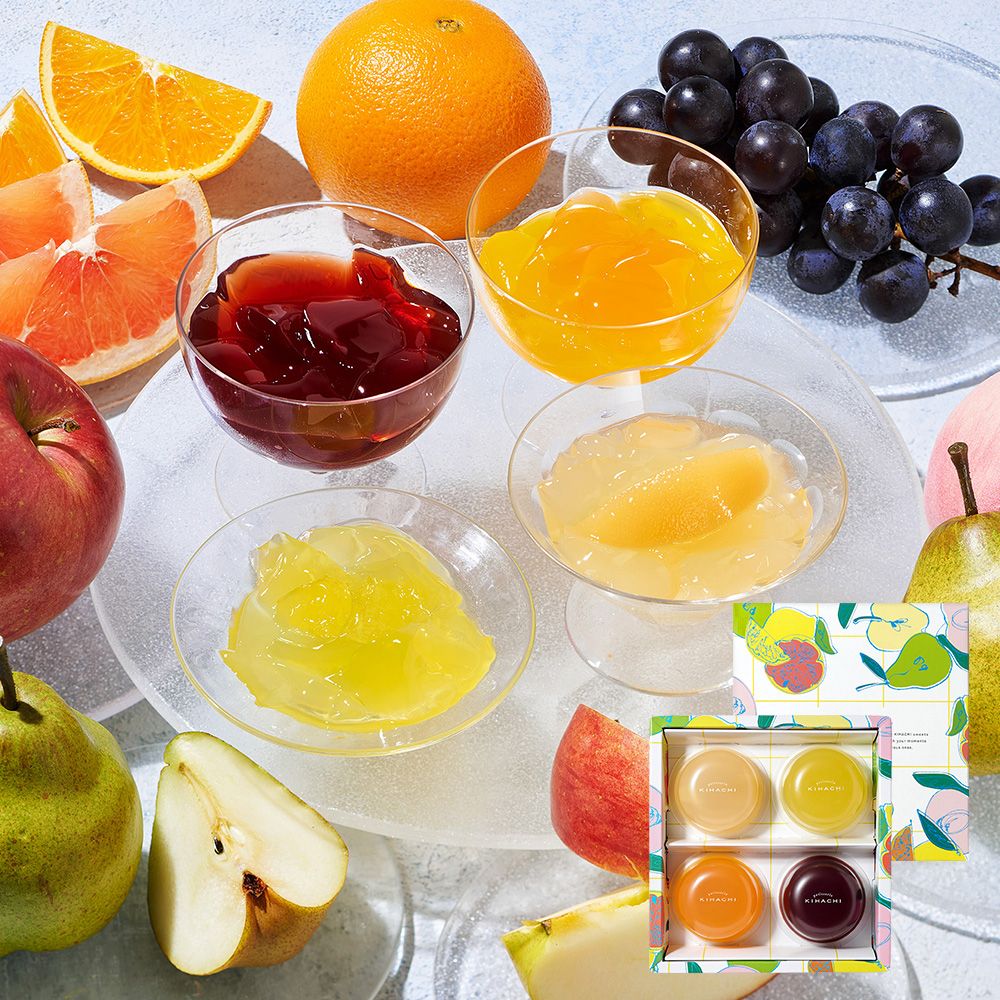 色とりどりのフルーツのピュレや果汁、果肉を厳選し、果実味あふれるジューシーなフルーツゼリーに仕上げました。
