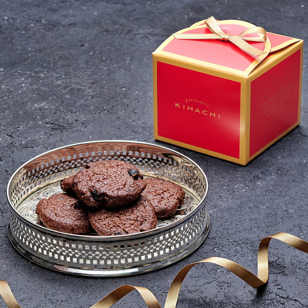 ラム酒に漬け込んだレーズン、チョコチップを加えたザクザク食感のほろ苦いチョコクッキーです。