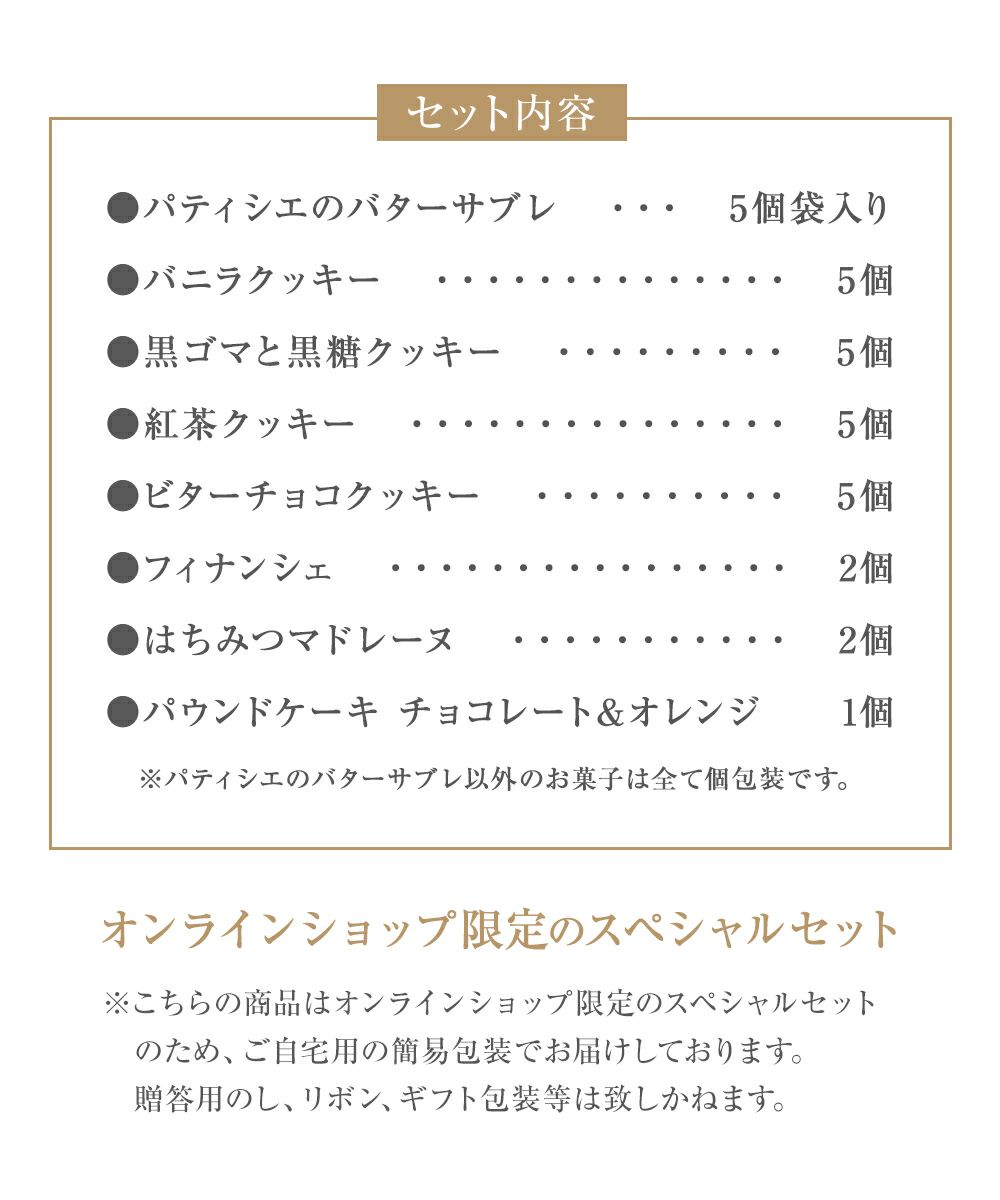他の画像を見る パティスリー キハチ 焼菓子ギフト 8種11個入 パティスリーキハチ 人気商品 価格 ¥ 2,389 税込 販売期間 2024/09/28 10:00 〜 詳細を見る お気に入りに登録する