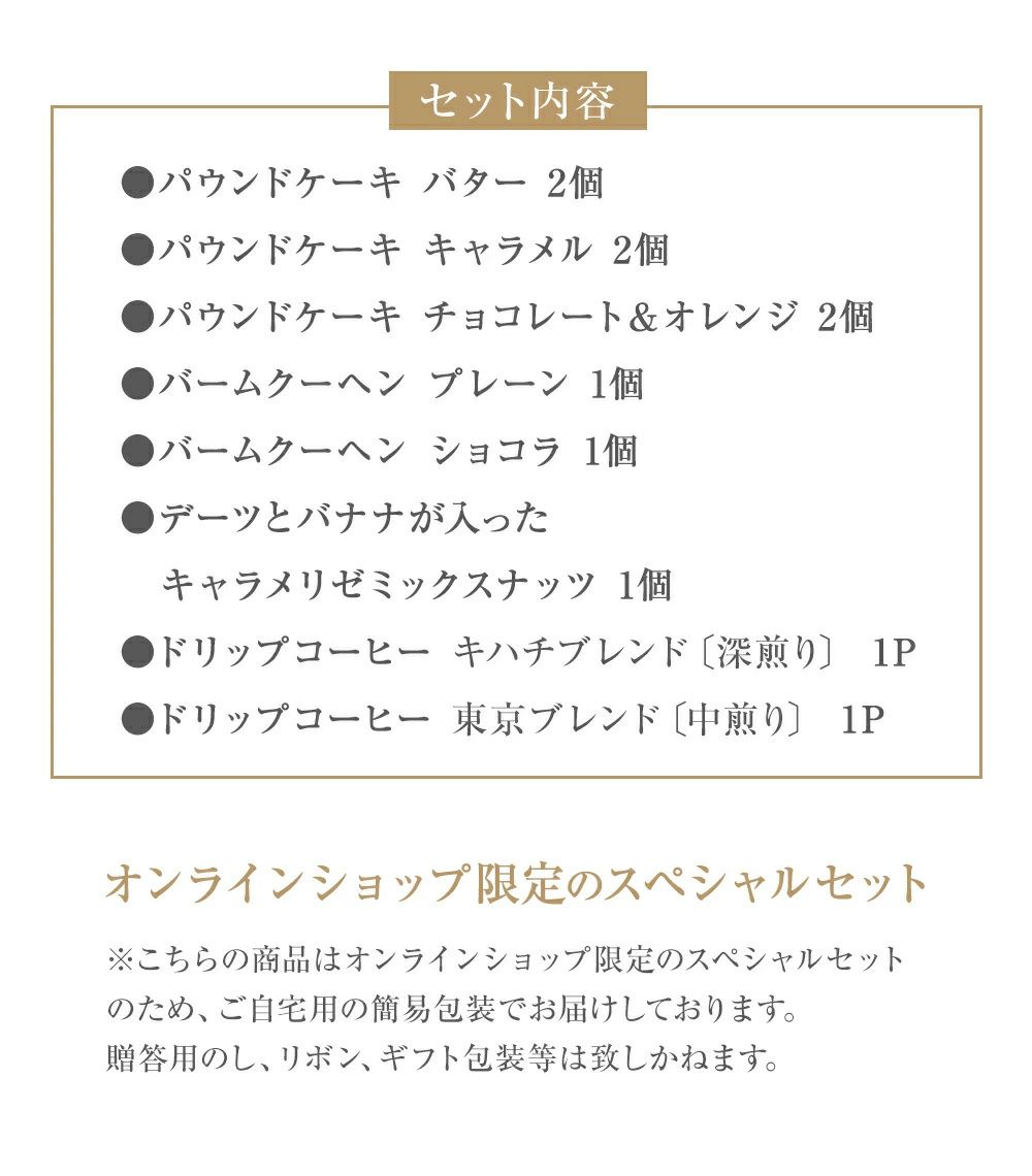 他の画像を見る オンライン限定/4月5日(日) AM10時~発売! キハチの日スペシャルBOXアイスコーヒーとナッツ・焼菓子の詰合せ おすすめ 価格 ¥ 2,800 税込 販売期間 2026/04/05 10:00 〜 2026/04/20 23:59 詳細を見る お気に入りに登録する